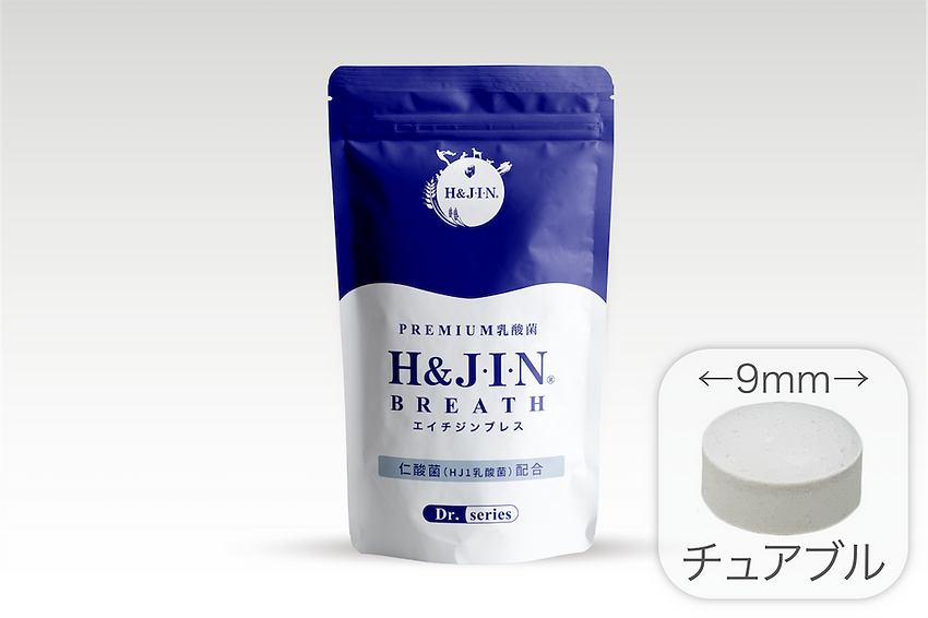 乳酸菌エイチジンブレスはHJ1乳酸菌を配合したオクチもオナカも喜ぶ全く新しい口腔内ケア乳酸菌サプリメントです。