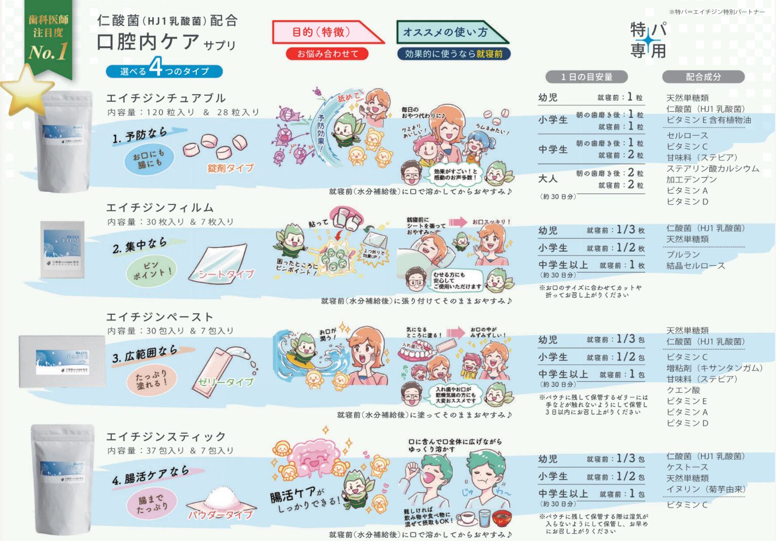 **仁酸菌(HJ1乳酸菌)配合の口腔ケアサプリメント『エイチジンシリーズ』**です。
